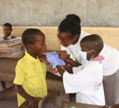 voorlichting en tandheelkundige behandelingen op scholen en in lokale klinieken. Zo